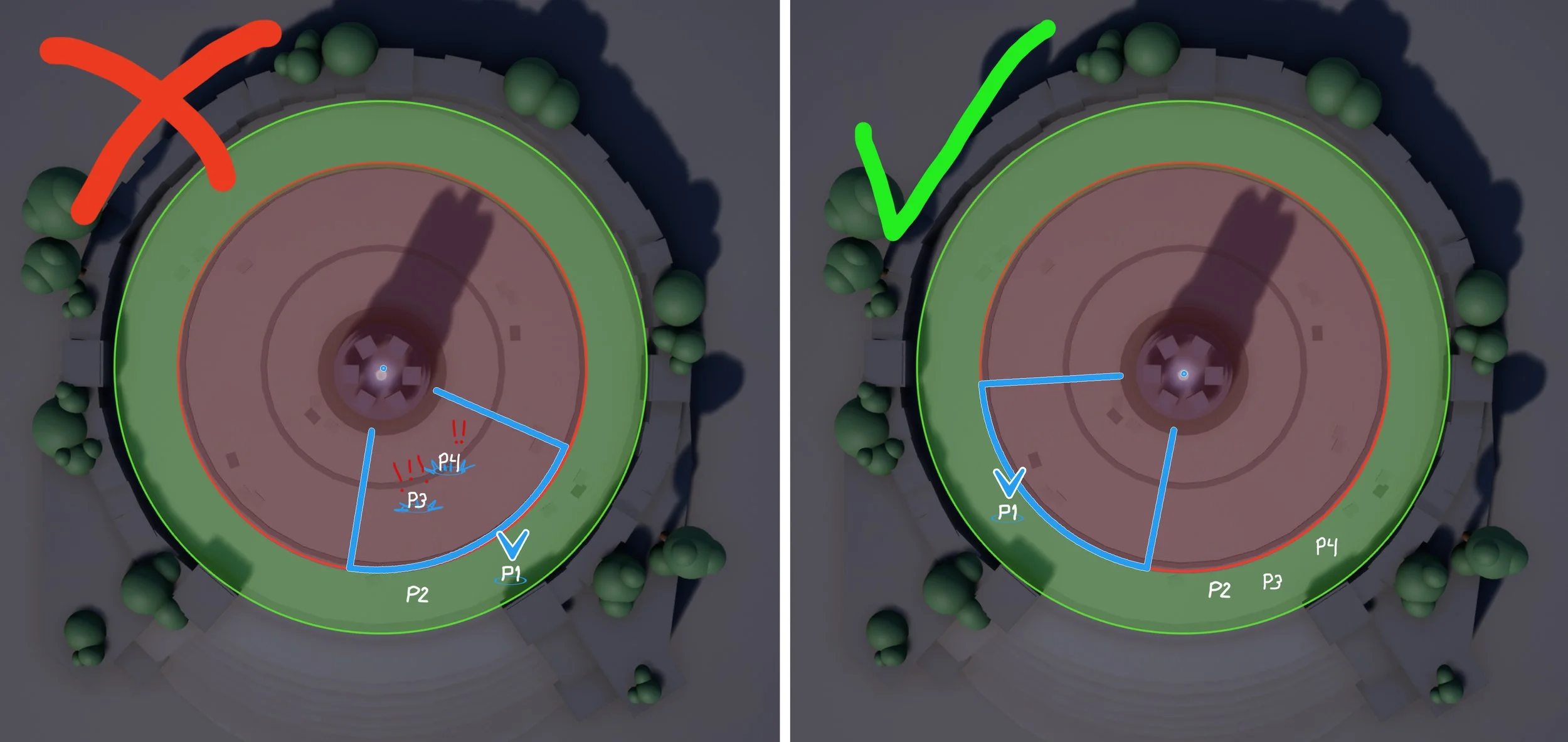 The challenge and difficulty is less from the turret itself, but more from the chaos of playing with other people. The idea is to utilise something all player characters share, no matter what role they are or whether they are ranged/melee type— in this case, using their position as the main component in how the gameplay unravels.