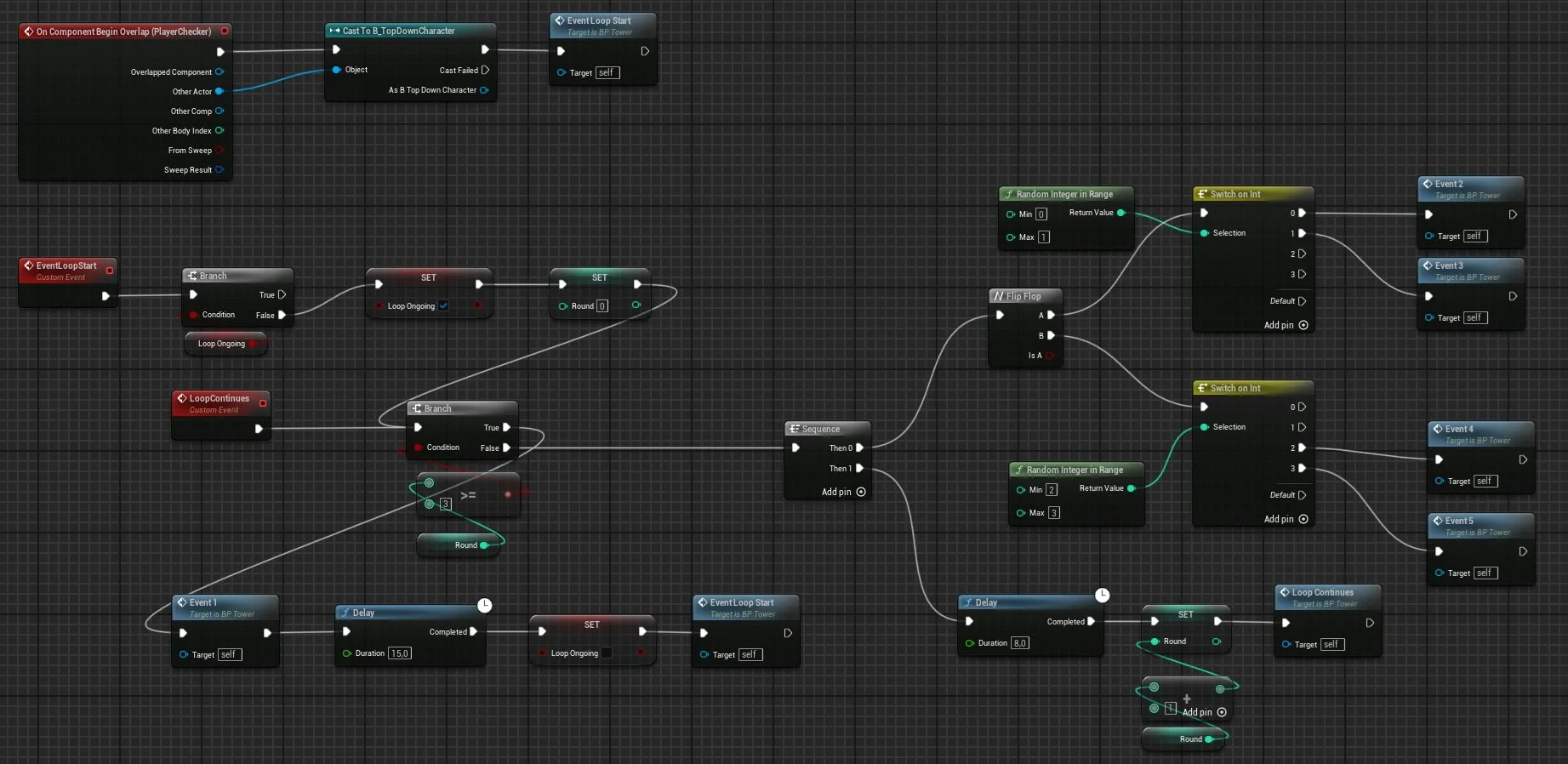 The tower has a box collision around it, and when a player walks into it, the cycle begins.