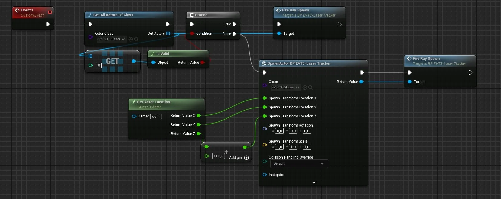 The fire ray works by spawning a hidden AI (the Trailmarker) that follows the targeted player. For a set time it continuously spawns a new fire on the ground at its location (Firestarter). First it double checks whether it should, as it will only spawn a new fire if there isn’t already a fire nearby or if it hasn’t recently spawned one.